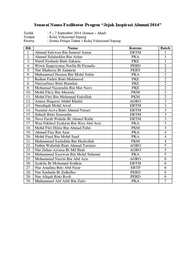 Senarai Nama Fasilitator Progrm Pdf